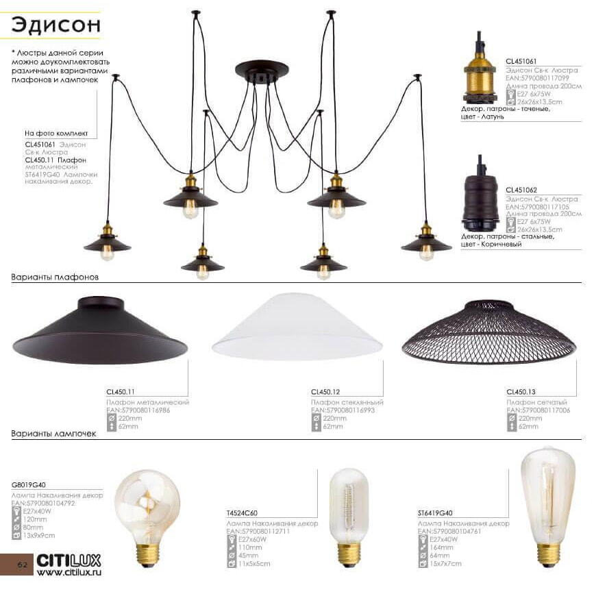 Подвесной светильник Citilux Эдисон CL450210